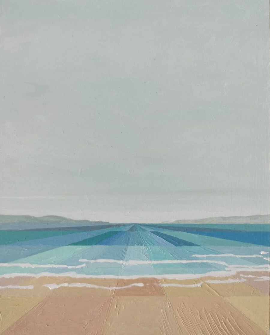 Esta obra representa un paisaje de playa con los trazos geométricos que dan magia y personalidad a la obra.